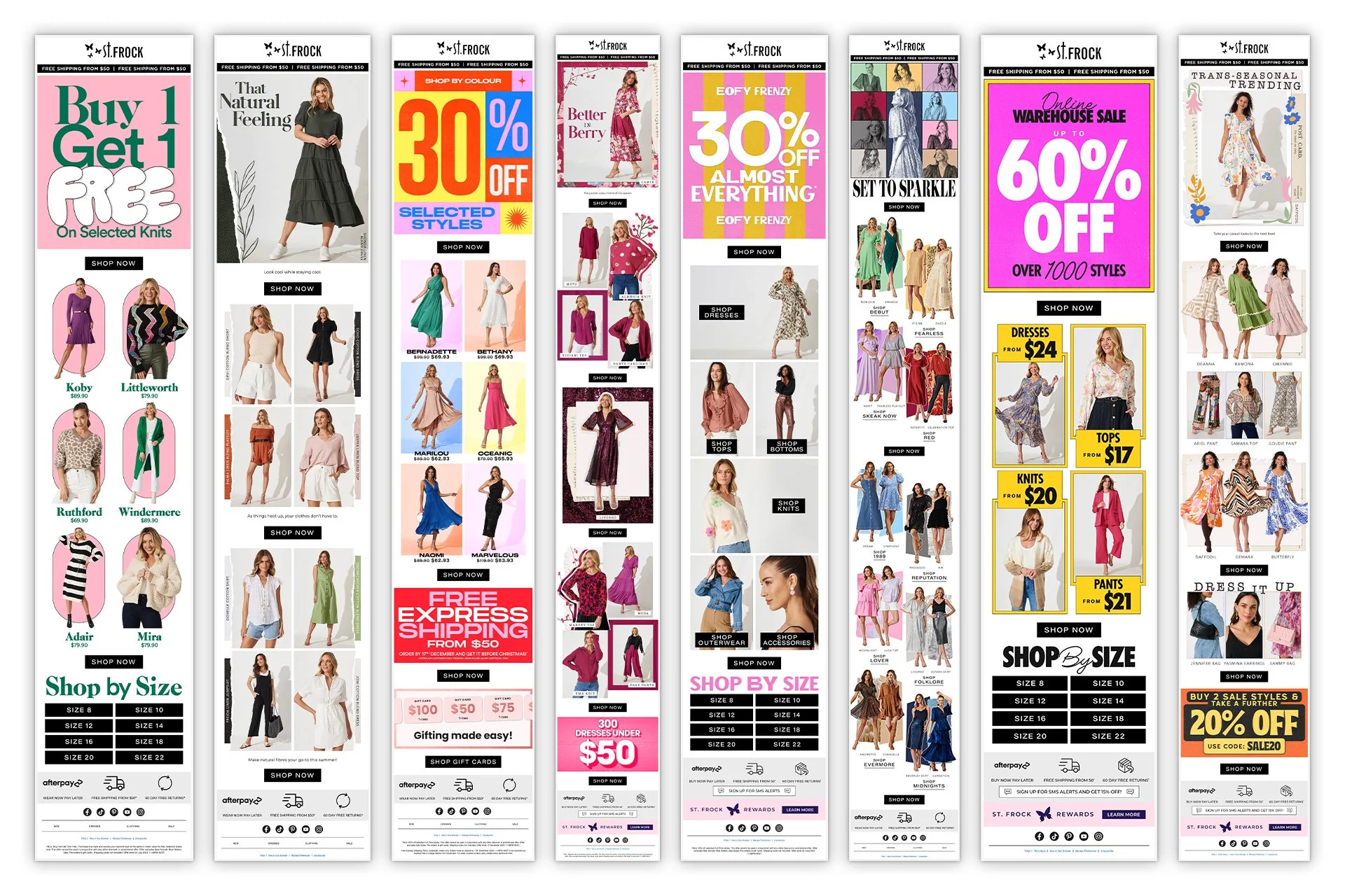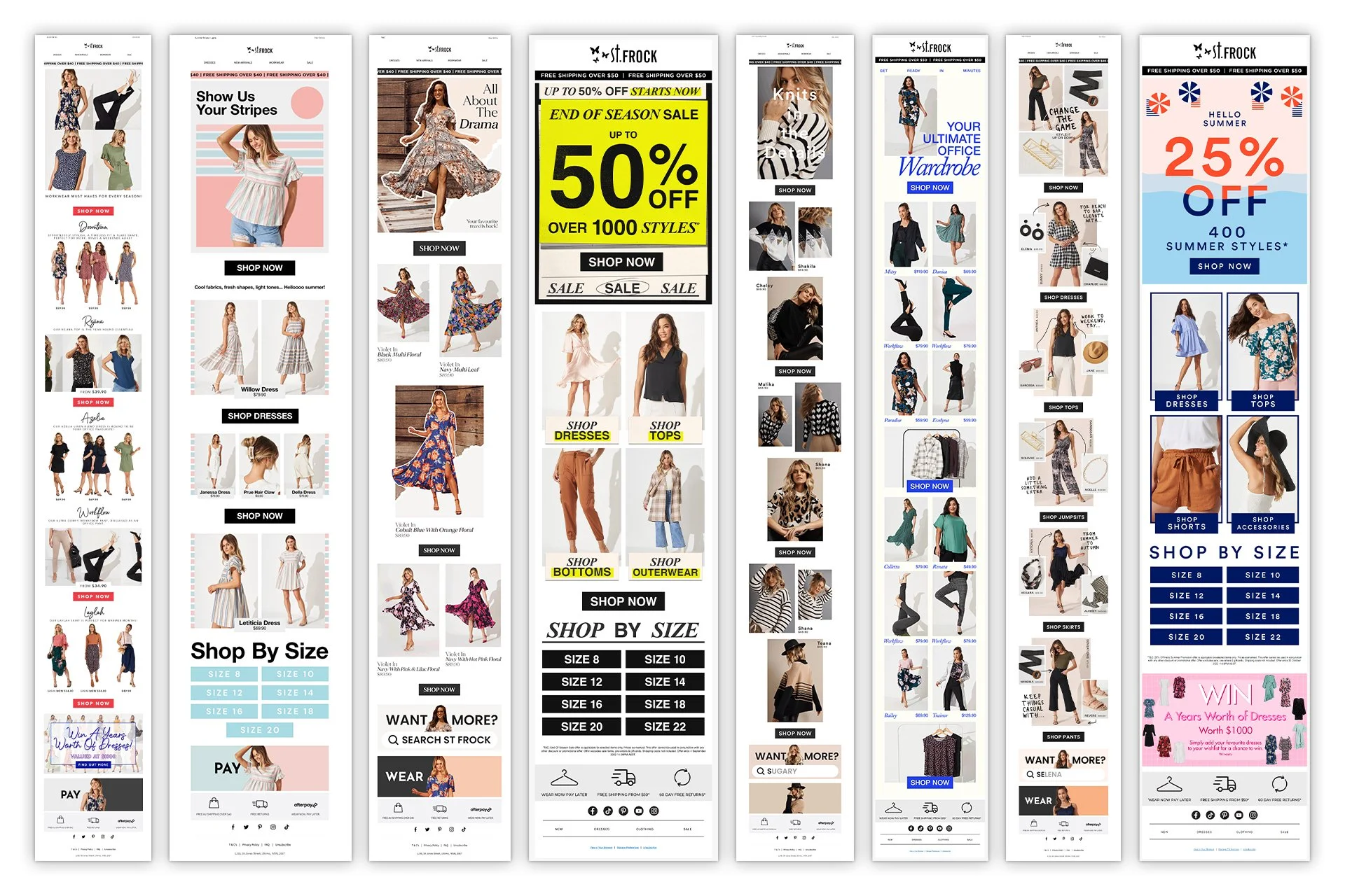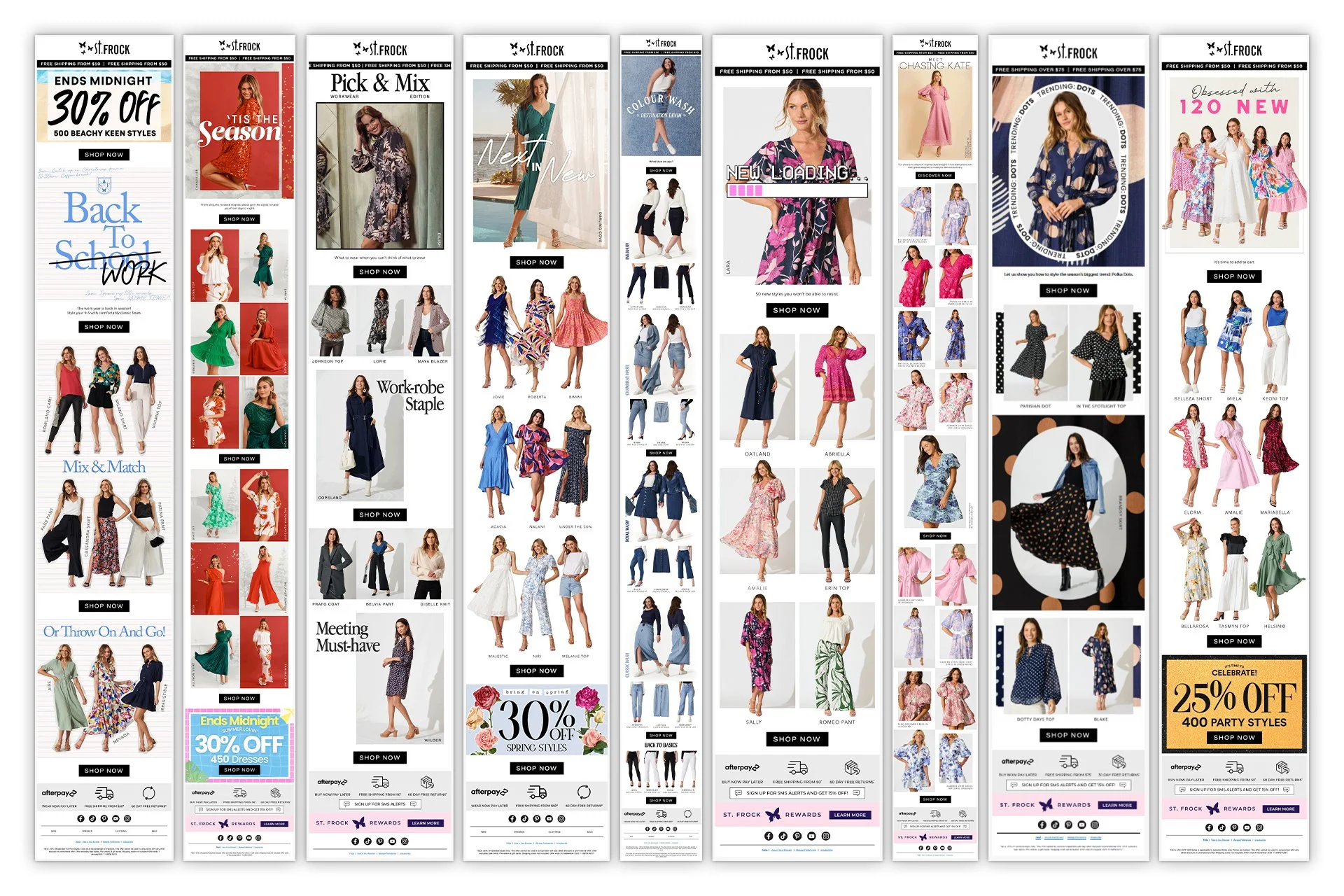 Below is a collection of various social media campaigns, templates, EDM artwork and more, created for online fashion retailer St Frock.